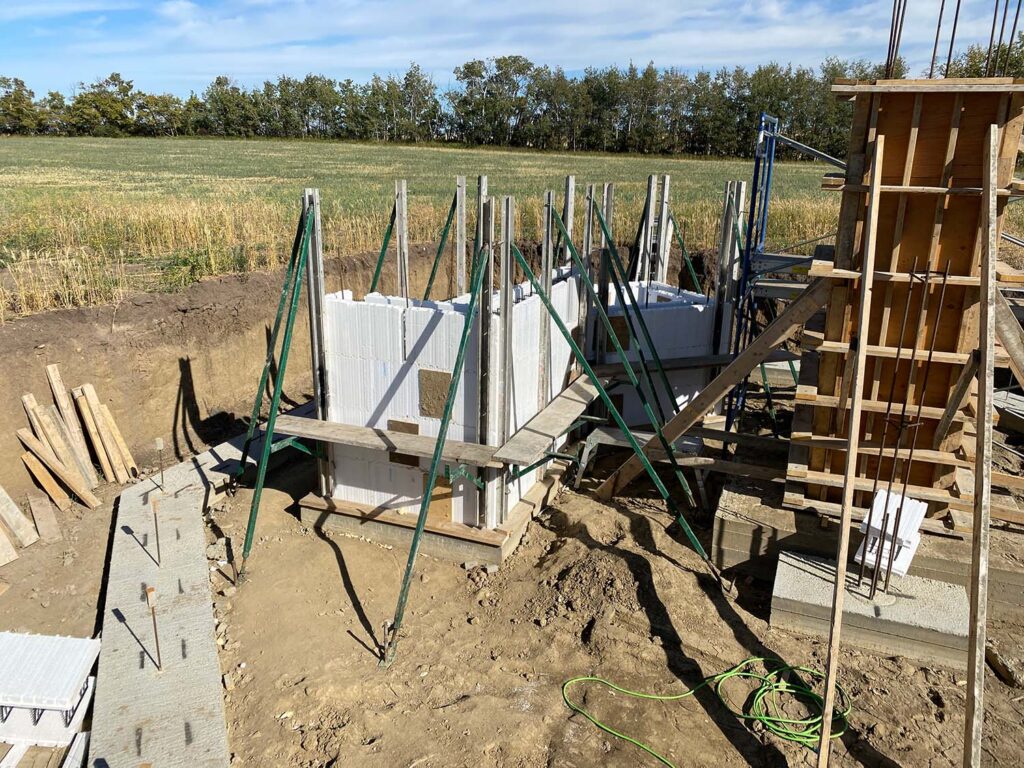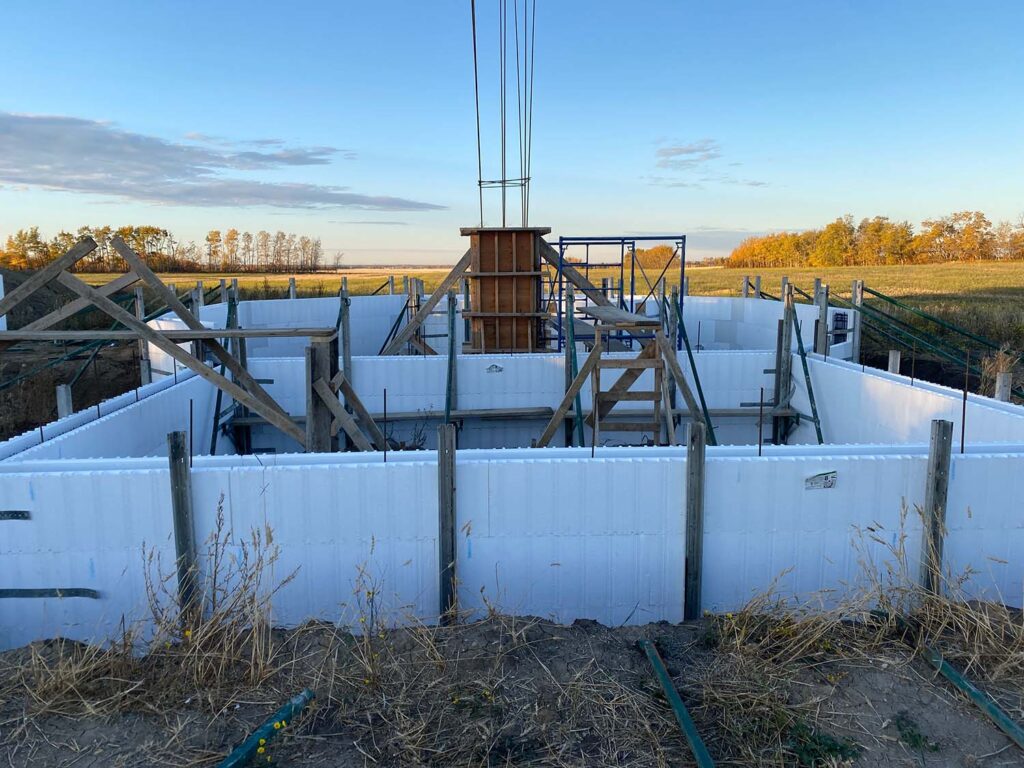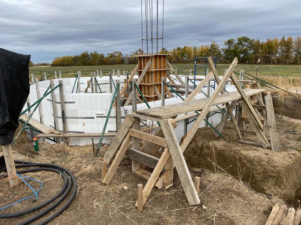 When I was originally planning the observatory, I had thought I would use plywood forms for the frost walls – it’s what my dad had used all his life when building houses, and what I was familiar with. However, plywood forms just aren’t popular any more when building houses. Most people now use insulated concrete forms (ICF) which are foam blocks that are stacked together (somewhat like Lego bricks) and then have concrete poured inside them. They are more expensive than renting plywood forms, but are popular because they also provide good insulation for a cement basement. But since the observatory is going to be unheated, spending the extra money on insulated forms didn’t seem to make much financial sense.