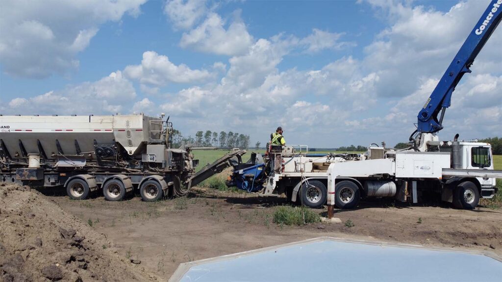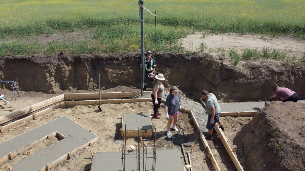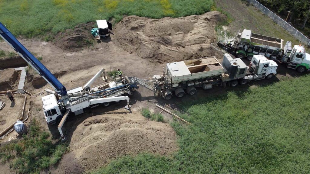 We obtained our cement from Rock Solid Concrete Products from Westlock. They have a great system where the cement is mixed from its components on-site. This has the advantage that it doesn’t start to cure when it leaves the cement truck; the curing starts as the concrete is placed. In addition, since it is mixed as needed, you don’t have to order extra to ensure you’ll have enough. You pay for exactly what you end up using.